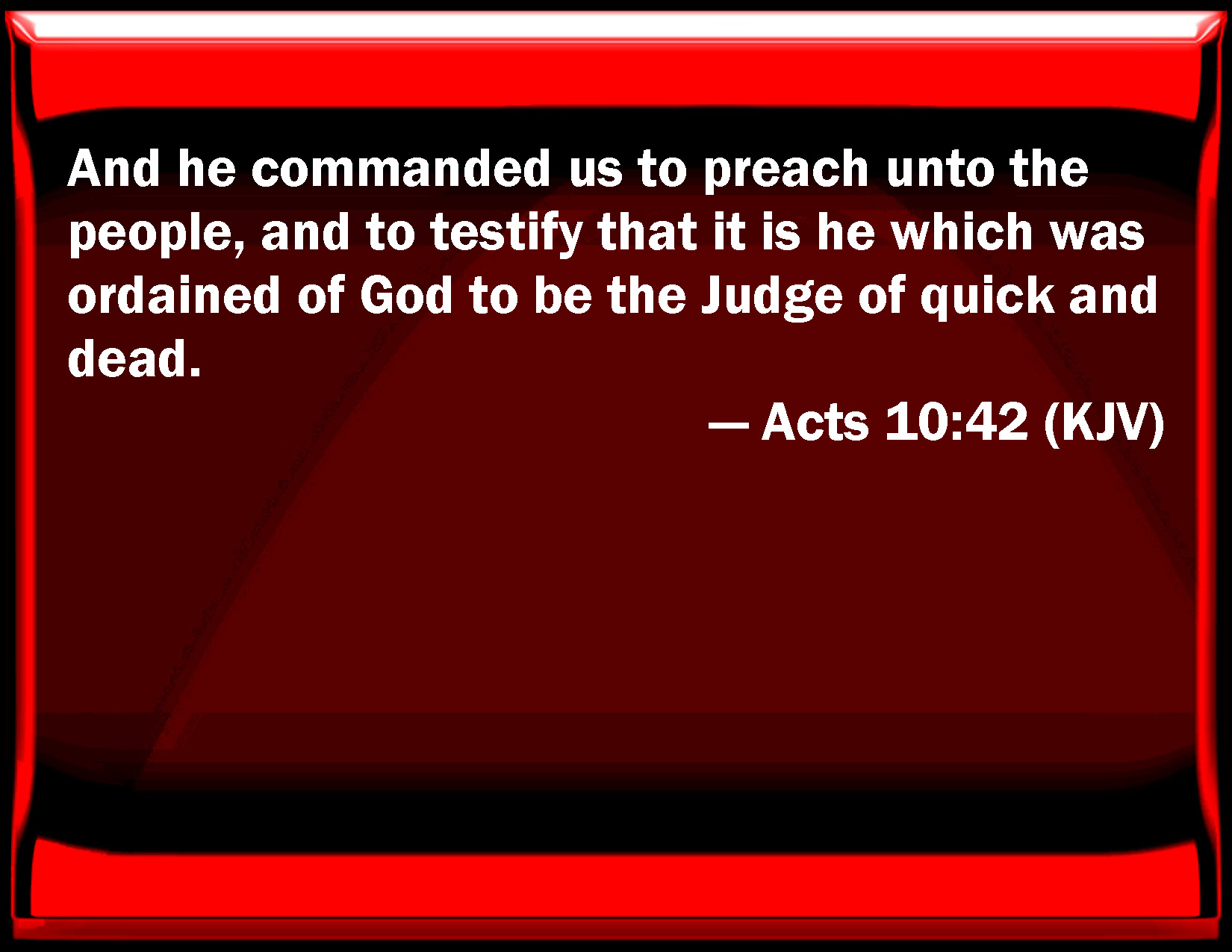 Acts 10:42 And he commanded us to preach to the people, and to testify that it is he which was ordained of God to be the Judge of quick and dead.