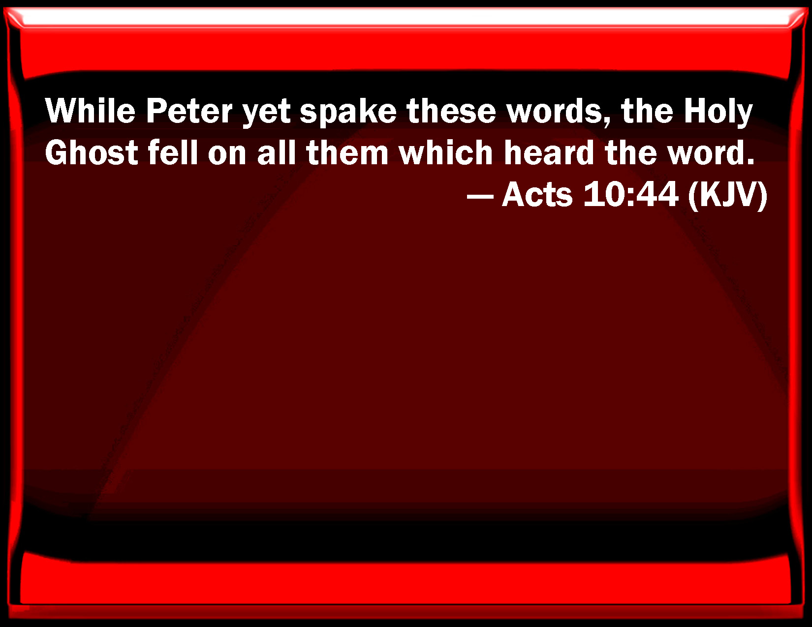 Acts 10:44 While Peter yet spoke these words, the Holy Ghost fell on all them which heard the word.