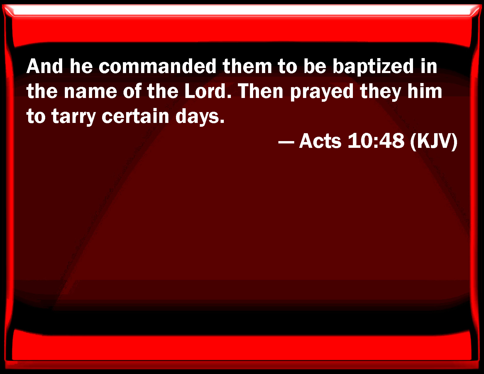 Acts 10:48 And he commanded them to be baptized in the name of the Lord. Then prayed they him to tarry certain days.