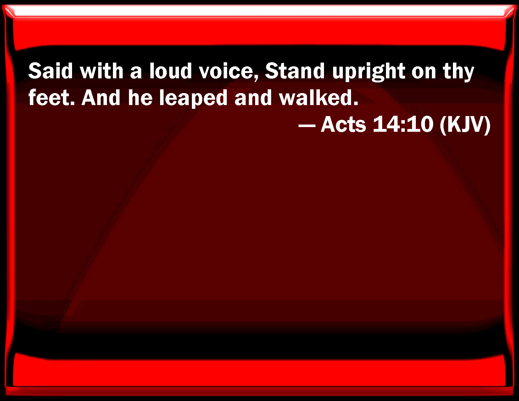 Acts 14:10 Said with a loud voice, Stand upright on your feet. And he leaped and walked.