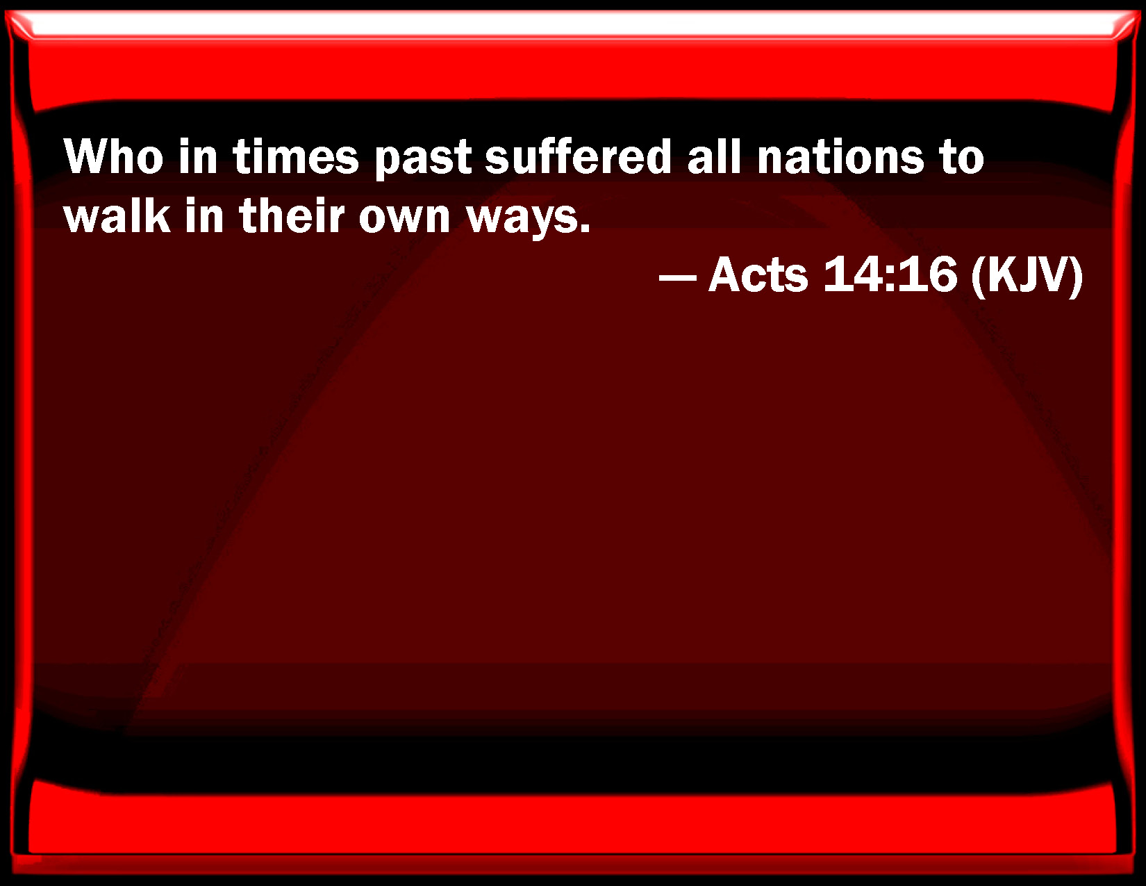 Acts 14:16 Who in times past suffered all nations to walk in their own ways.