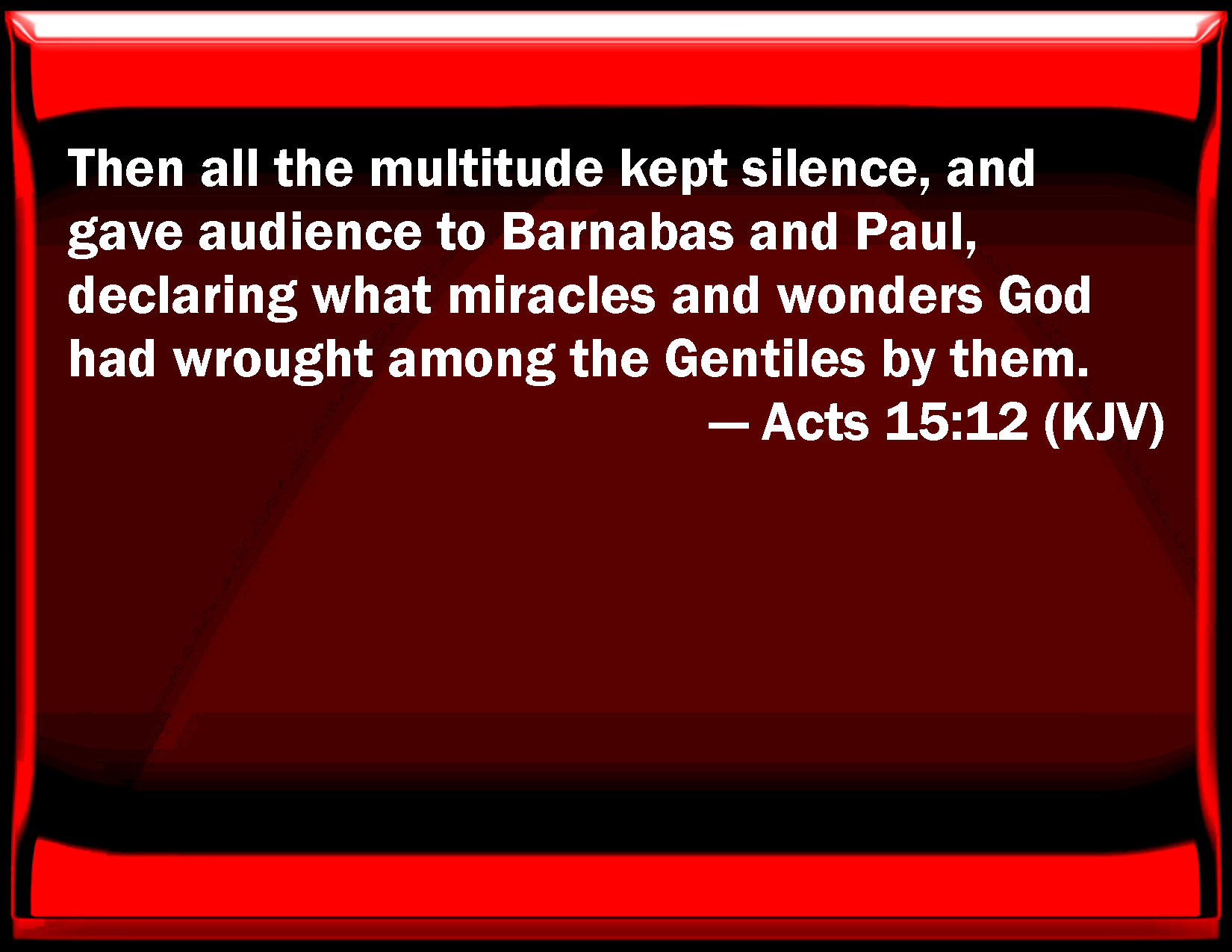 Acts 15:12 Then all the multitude kept silence, and gave audience to Barnabas and Paul, declaring what miracles and wonders God had worked among the Gentiles by them.