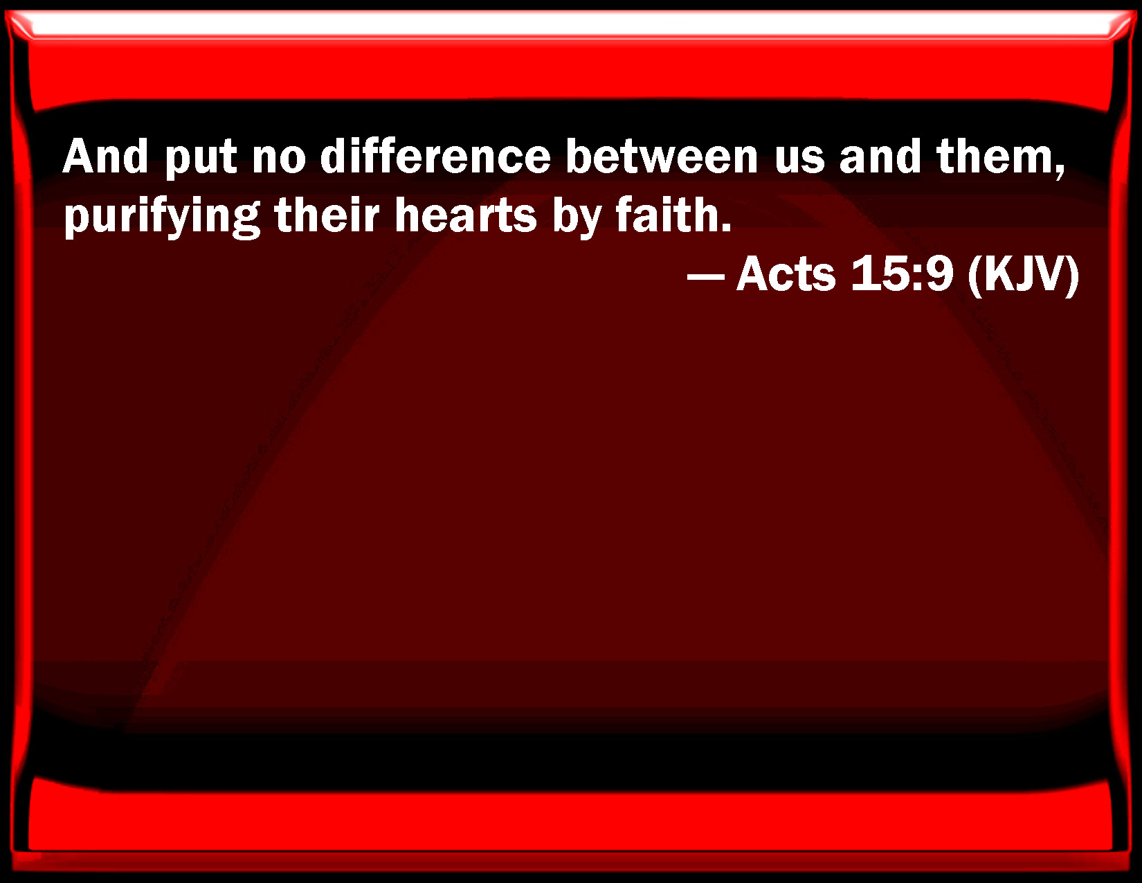 Acts 15:9 And put no difference between us and them, purifying their hearts by faith.
