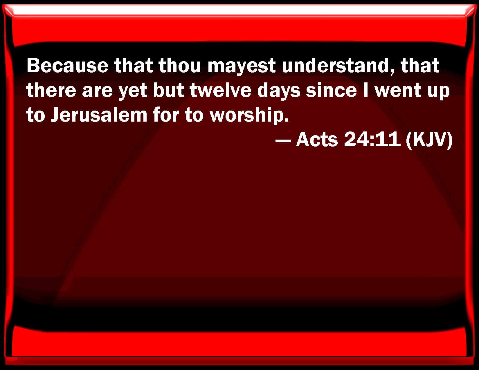 Acts 24:11 Because that you may understand, that there are yet but twelve days since I went up to Jerusalem for to worship.