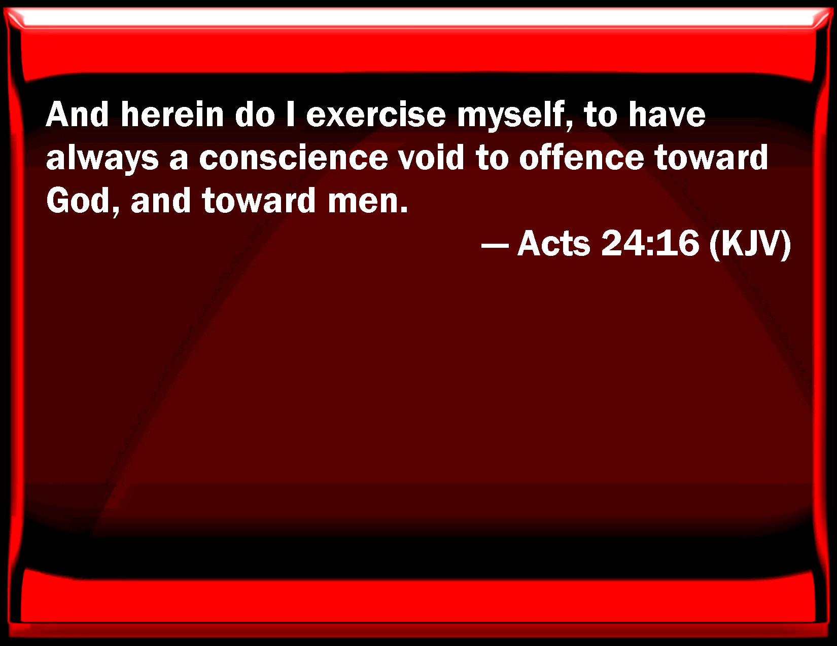 Acts 24:16 And herein do I exercise myself, to have always a conscience void to offense toward God, and toward men.