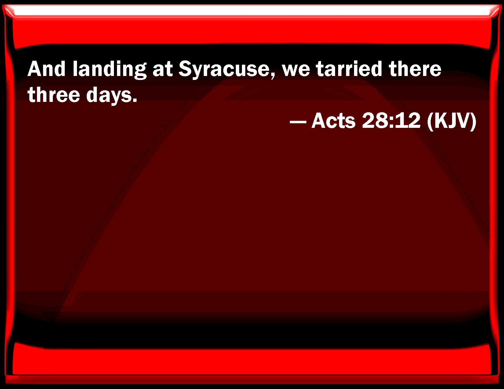 Acts 28:12 And landing at Syracuse, we tarried there three days.