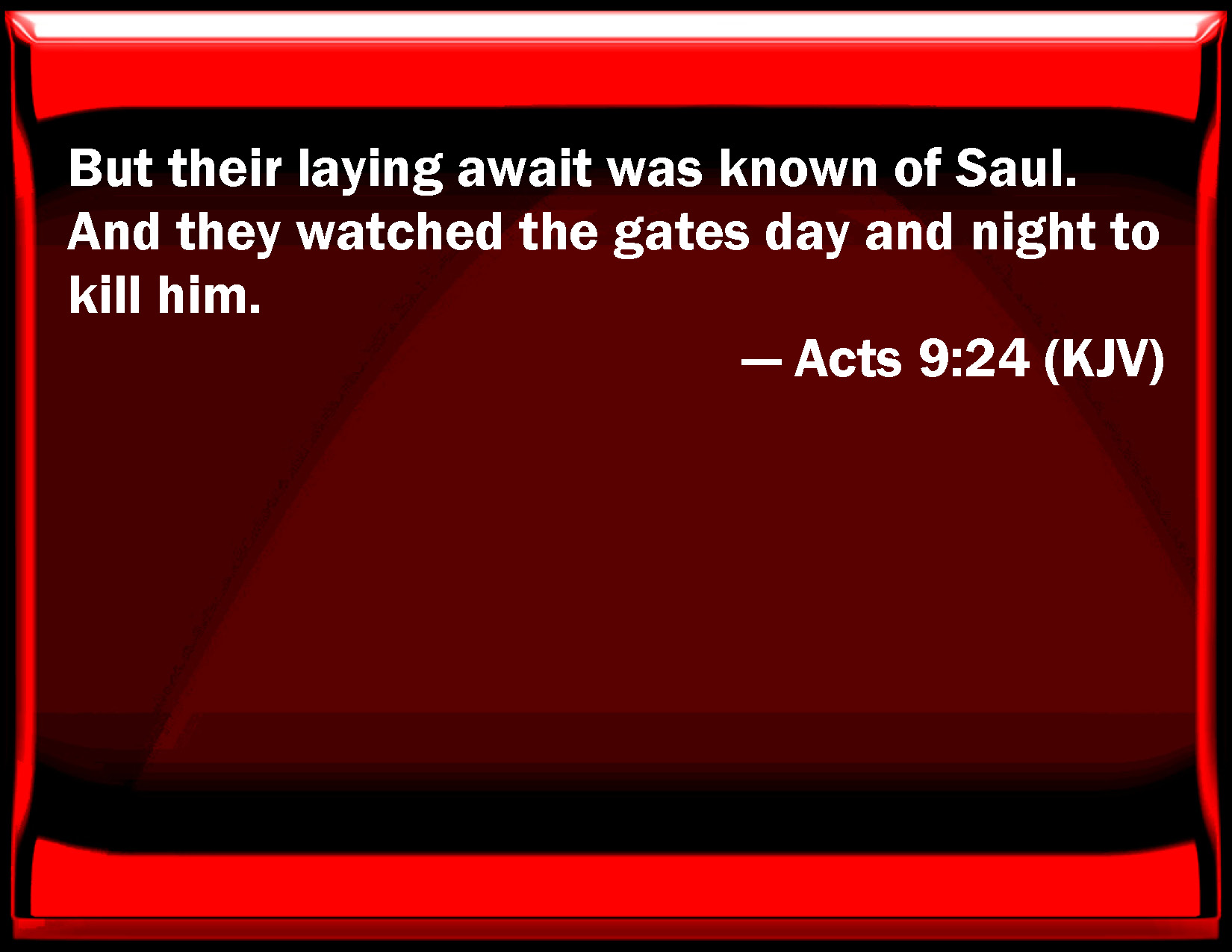 Acts 9:24 But their laying await was known of Saul. And they watched the gates day and night to kill him.