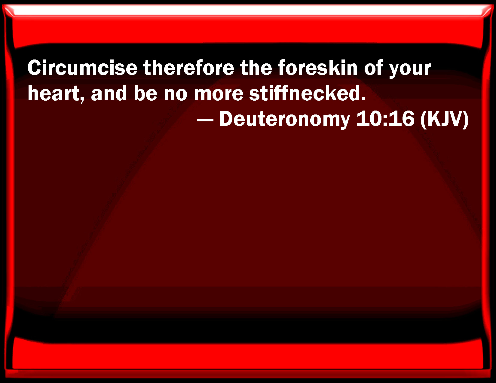 Deuteronomy 10:16 Circumcise therefore the foreskin of your heart, and be no more stiff necked.
