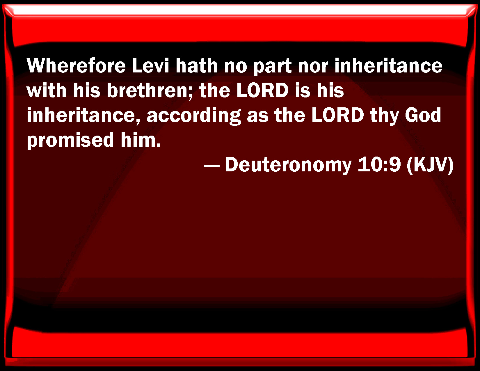 Deuteronomy 10:9 Why Levi has no part nor inheritance with his brothers; the LORD is his inheritance, according as the LORD your God promised him.