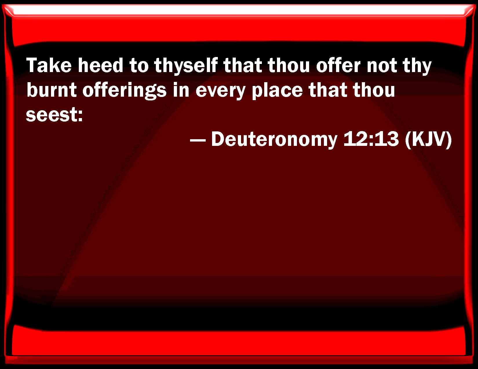 Deuteronomy 12:13 Take heed to yourself that you offer not your burnt offerings in every place that you see: