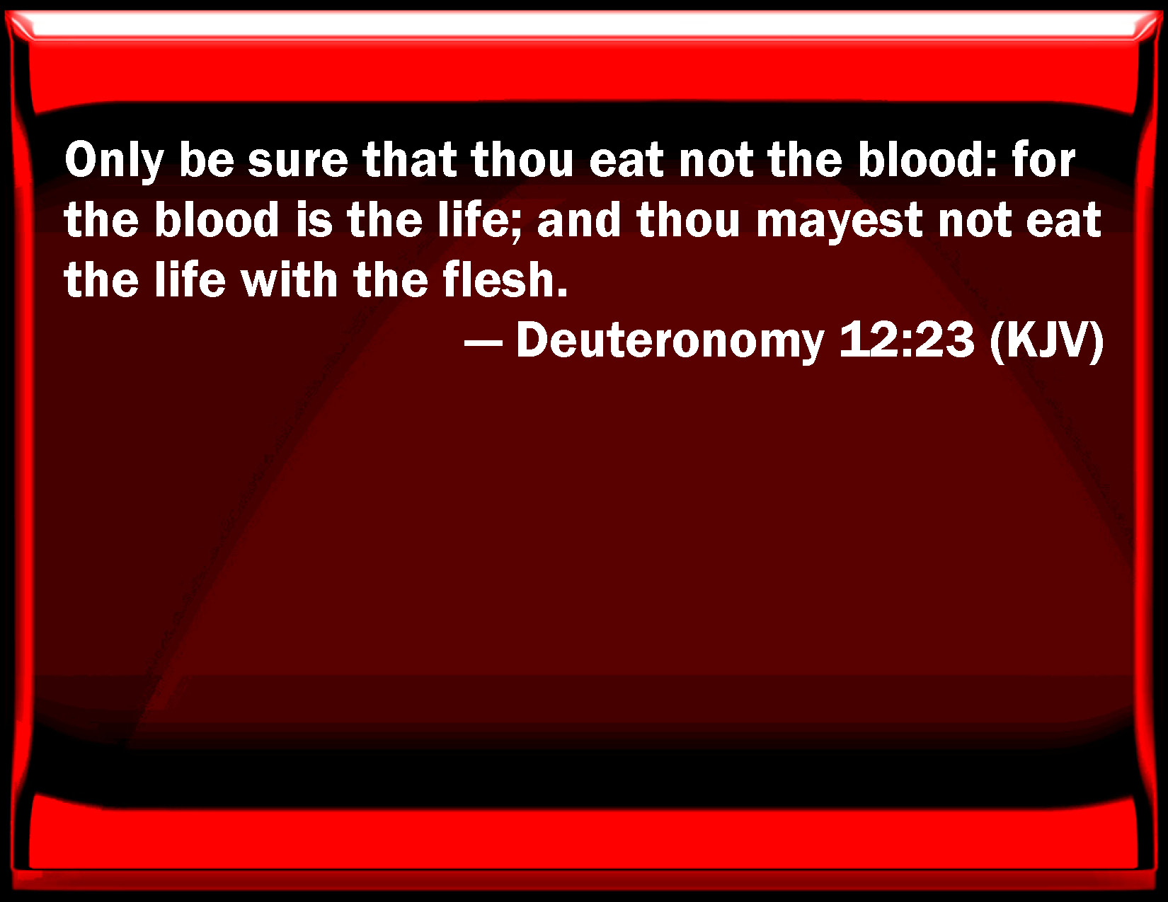 Deuteronomy 12:23 Only be sure that you eat not the blood: for the blood is the life; and you may not eat the life with the flesh.