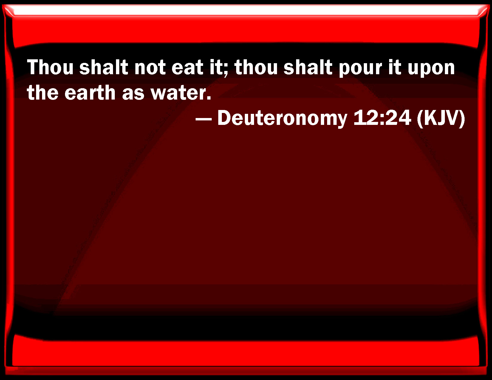 Deuteronomy 12:24 You shall not eat it; you shall pour it on the earth as water.