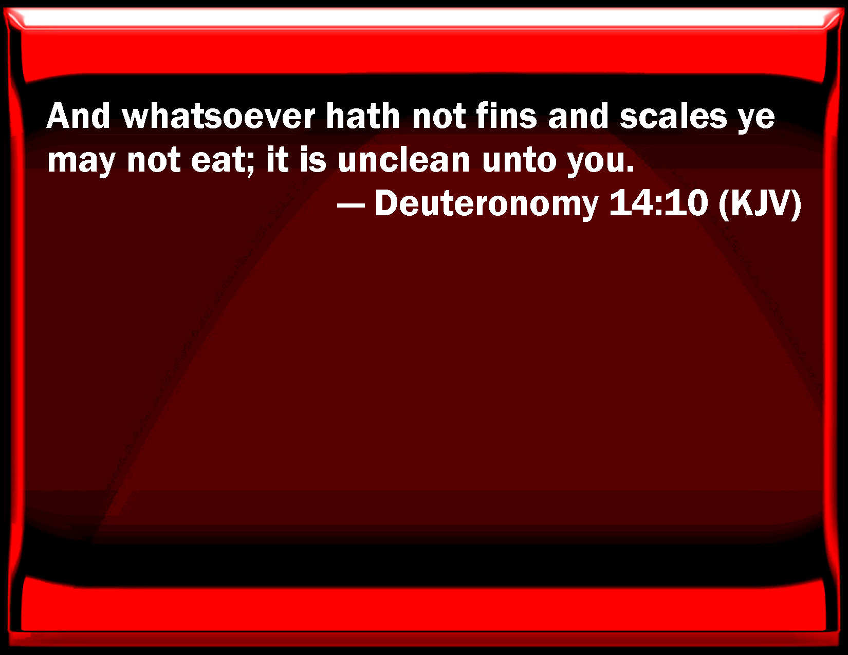 Deuteronomy 14:10 And whatever has not fins and scales you may not eat; it is unclean to you.