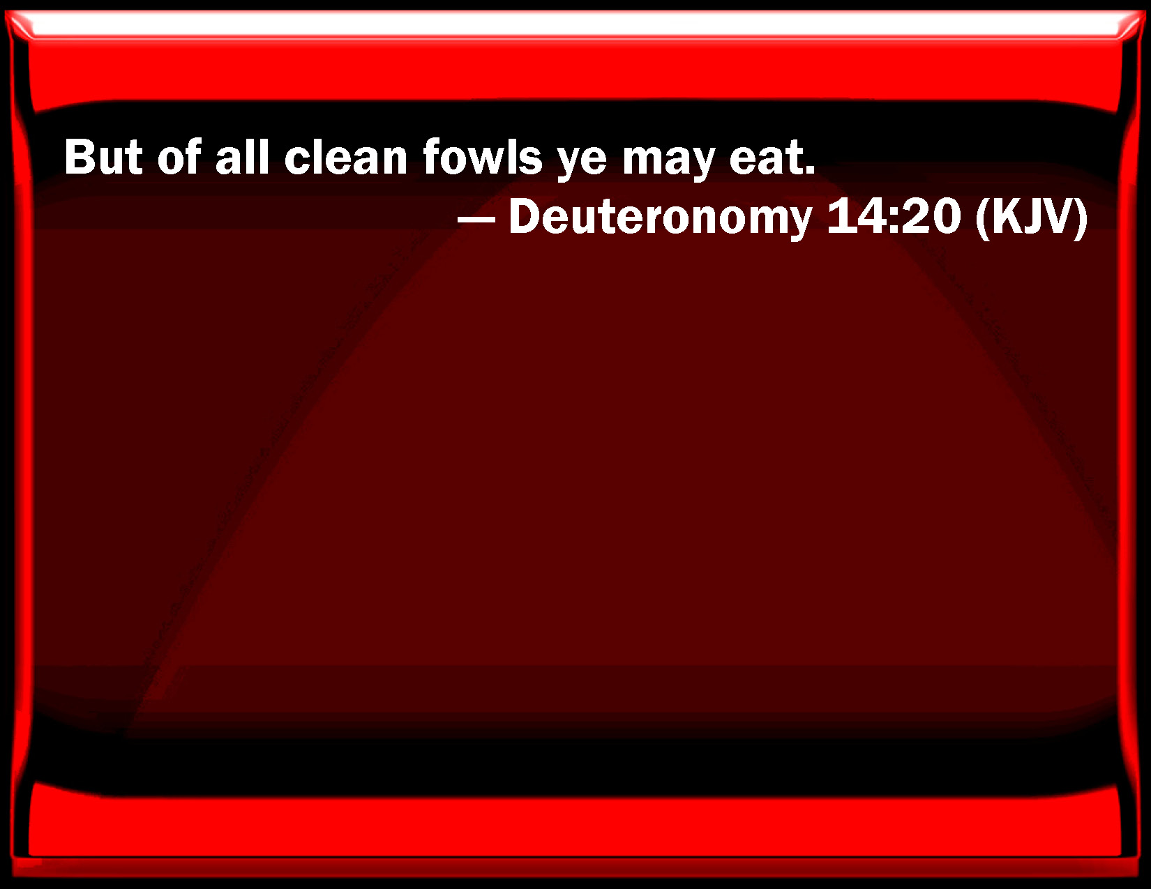 Deuteronomy 14:20 But of all clean fowls you may eat.