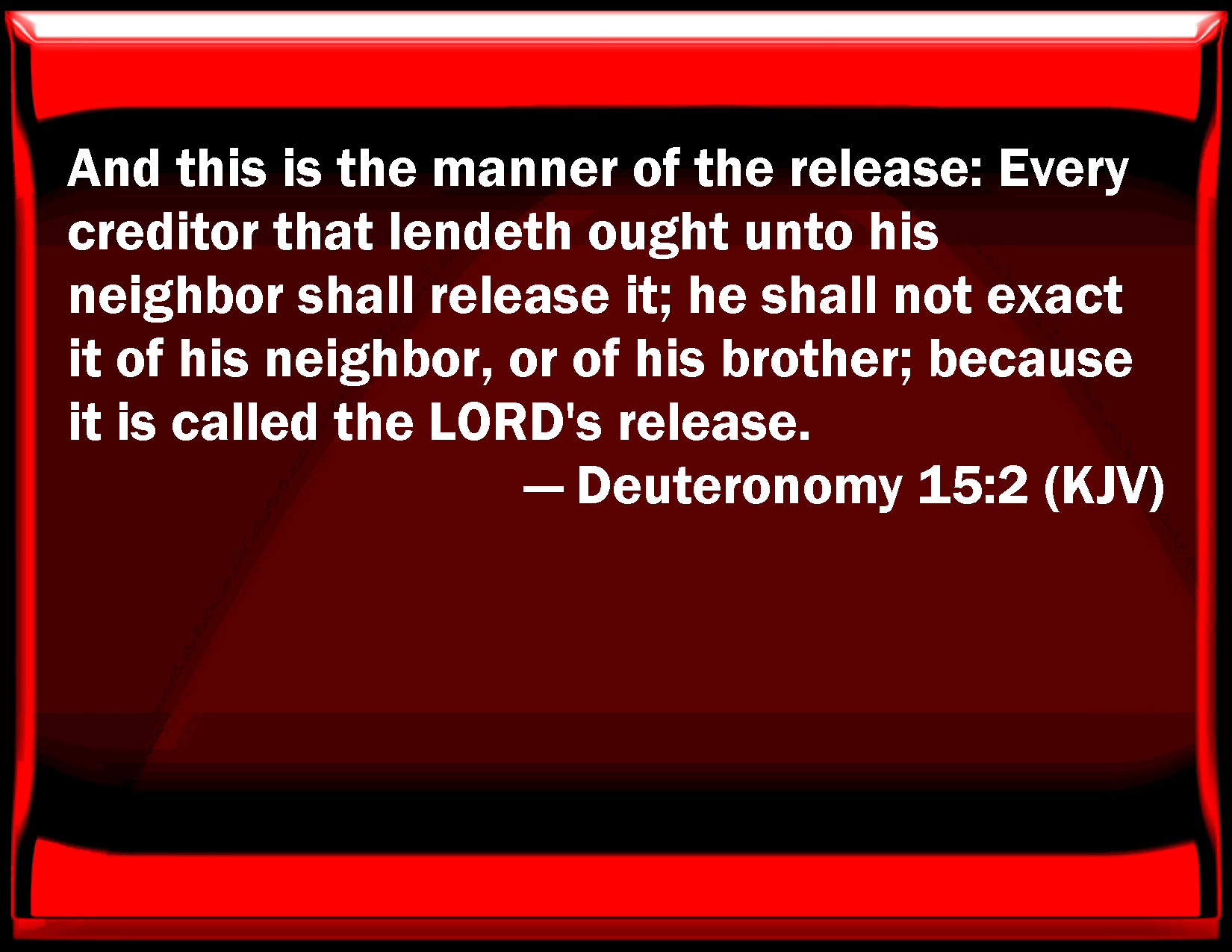 Deuteronomy 15:2 And this is the manner of the release: Every creditor that lends ought to his neighbor shall release it; he shall not exact it of his neighbor, or of his brother; because it is called the LORD's release.
