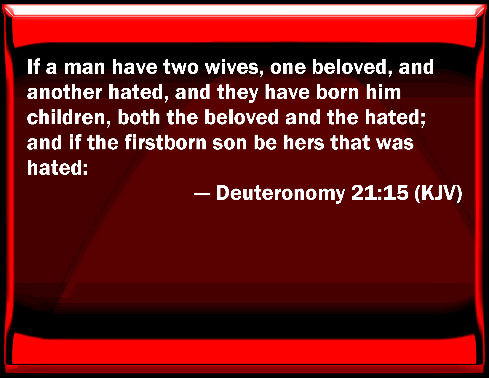 Deuteronomy 21:15 If a man have two wives, one beloved, and another hated, and they have born him children, both the beloved and the hated; and if the firstborn son be hers that was hated: