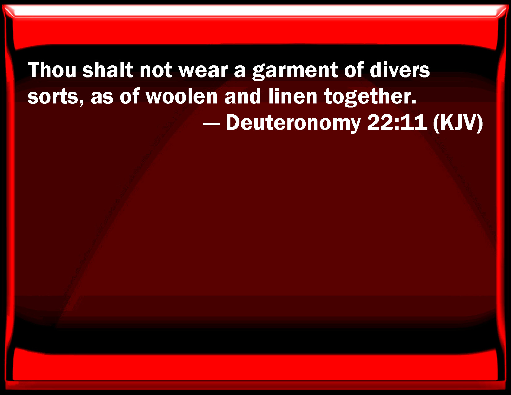 Thou shalt not wear a garment of mixed material, woven of wool and linen together.