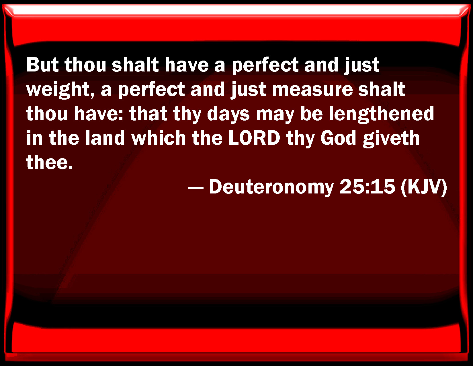 A perfect and just weight shalt thou have; a perfect and just measure shalt thou have: that thy days may be long upon the land which the LORD thy God giveth thee.