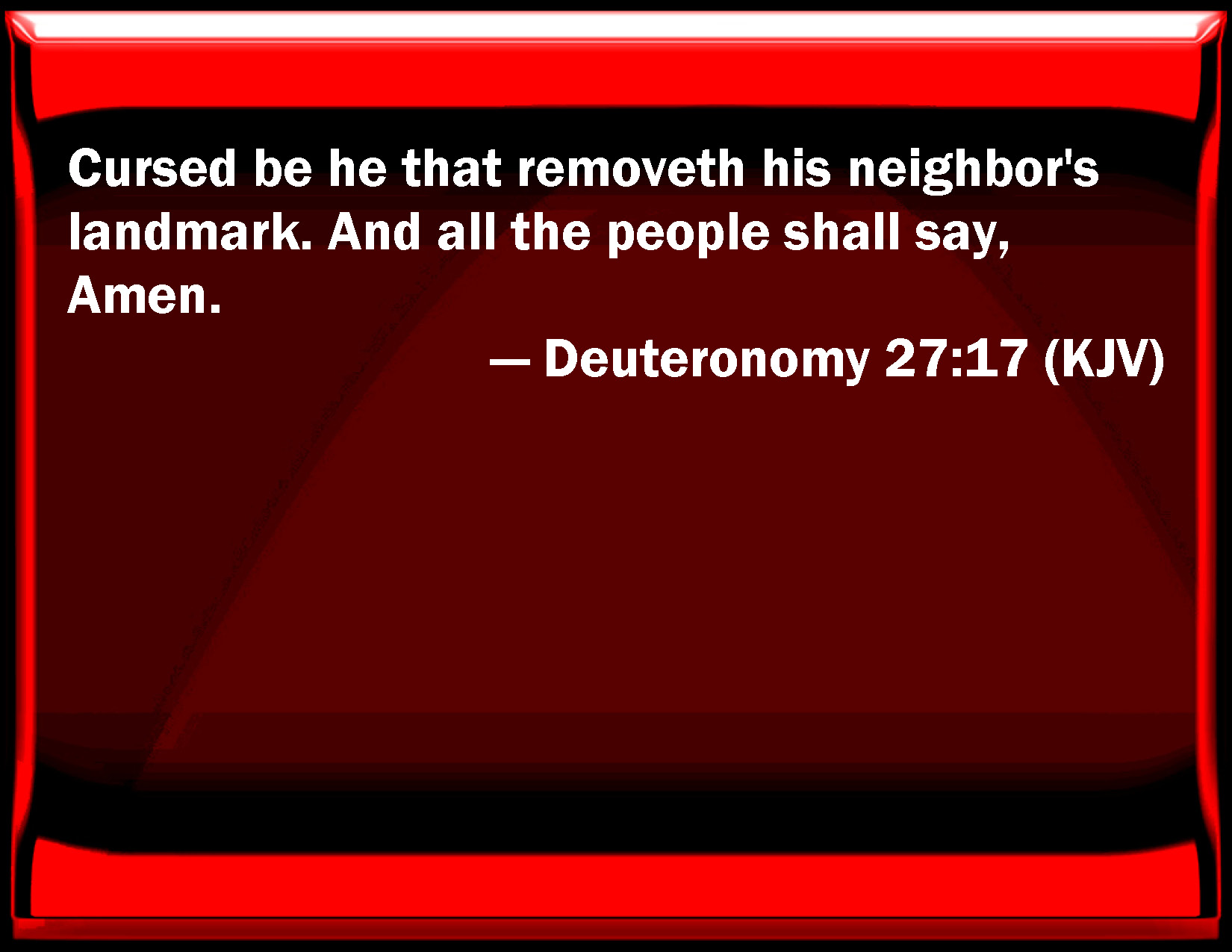 Deuteronomy 27:17 Cursed be he that removes his neighbor's landmark. And all the people shall say, Amen.