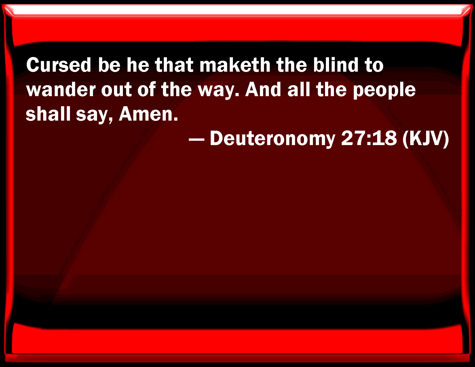 Deuteronomy 27:18 Cursed be he that makes the blind to wander out of the way. And all the people shall say, Amen.