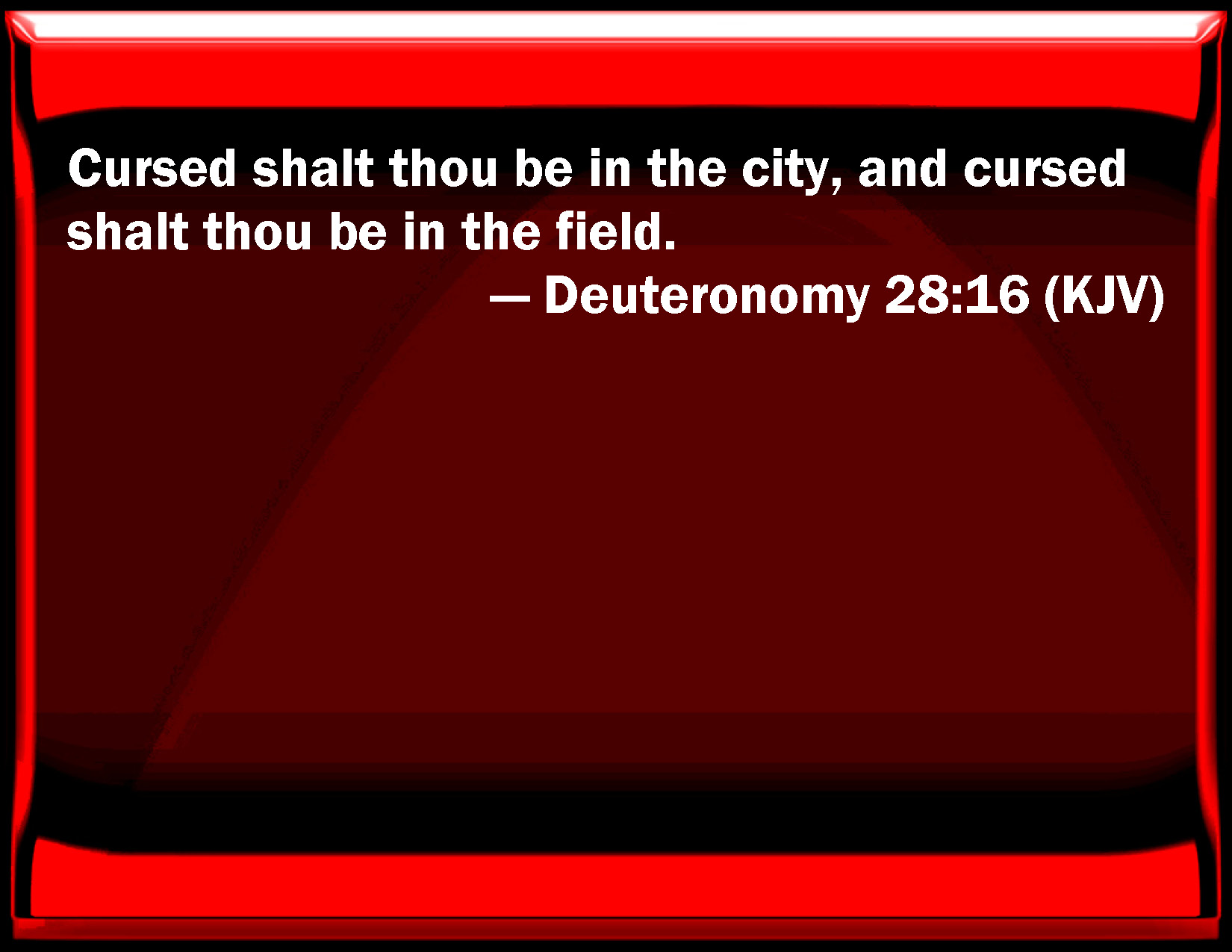Deuteronomy 28:16 Cursed shall you be in the city, and cursed shall you be in the field.