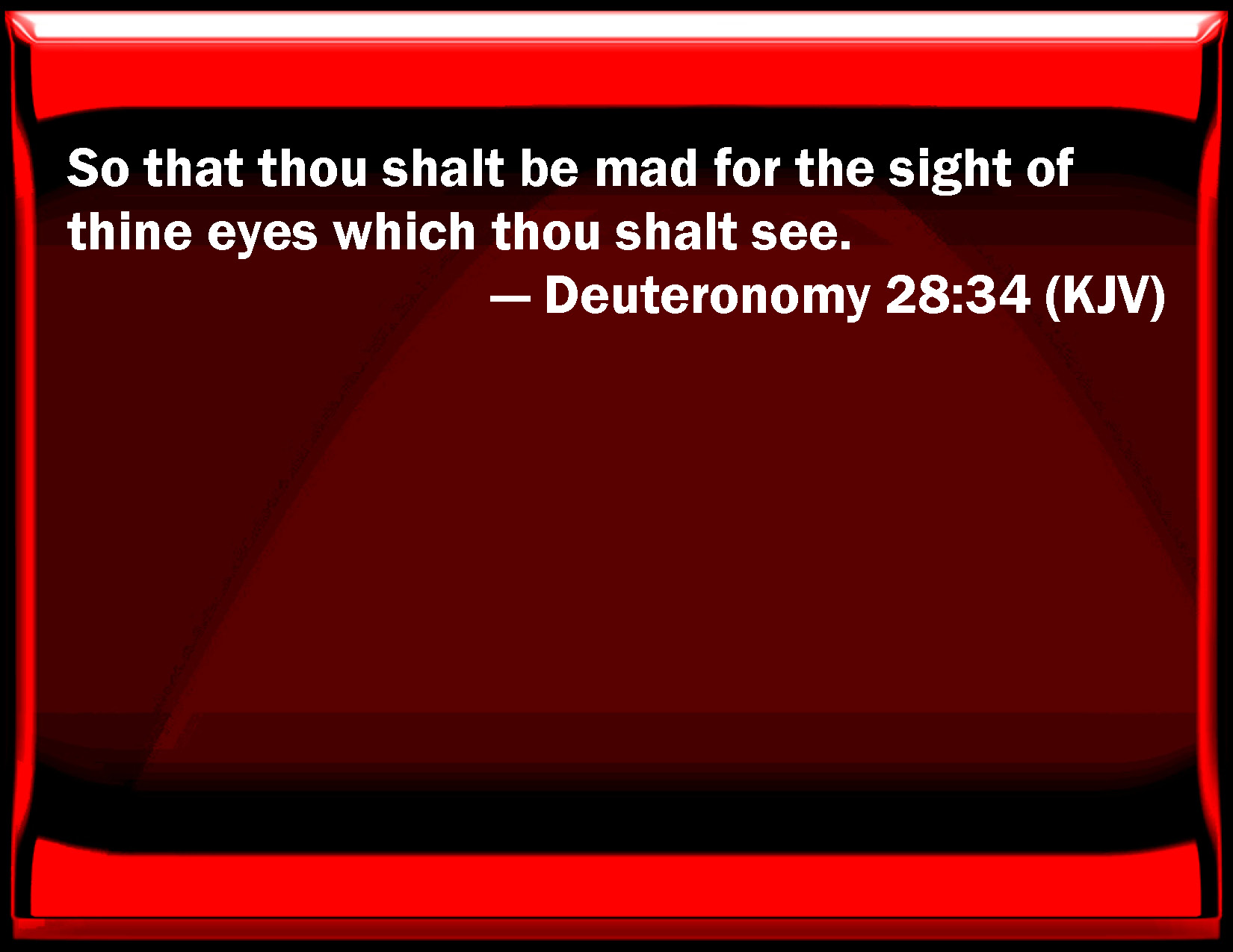Deuteronomy 28:34 So that you shall be mad for the sight of your eyes which you shall see.
