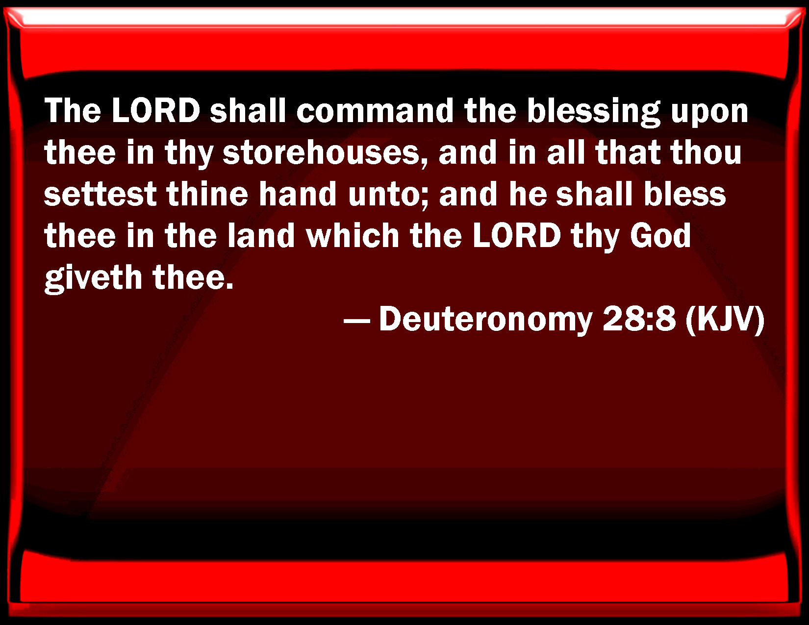 The LORD shall command the blessing upon thee in thy storehouses, and in all that thou settest thine hand unto; and he shall bless thee in the land which the LORD thy God giveth thee.