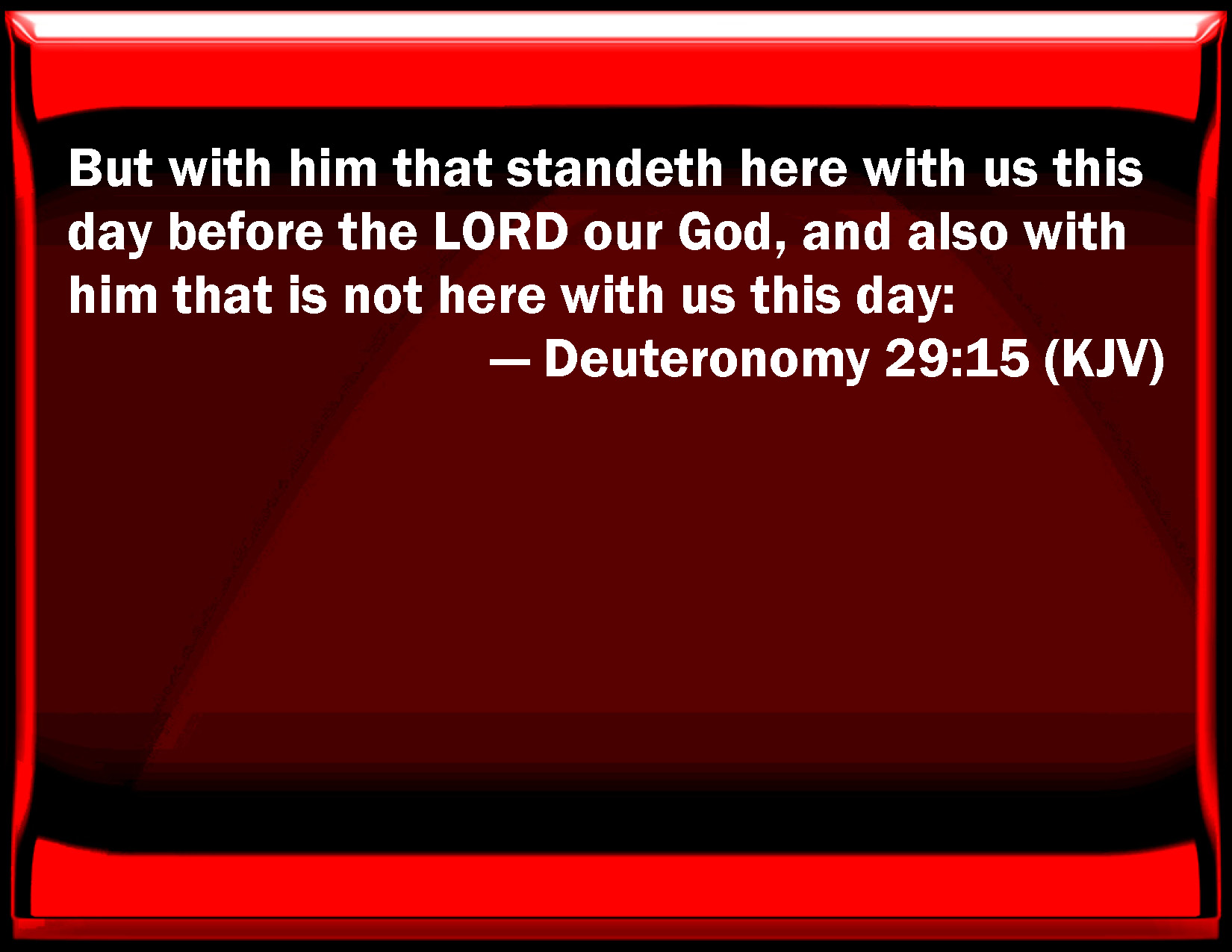 Deuteronomy 29:15 But with him that stands here with us this day before the LORD our God, and also with him that is not here with us this day: