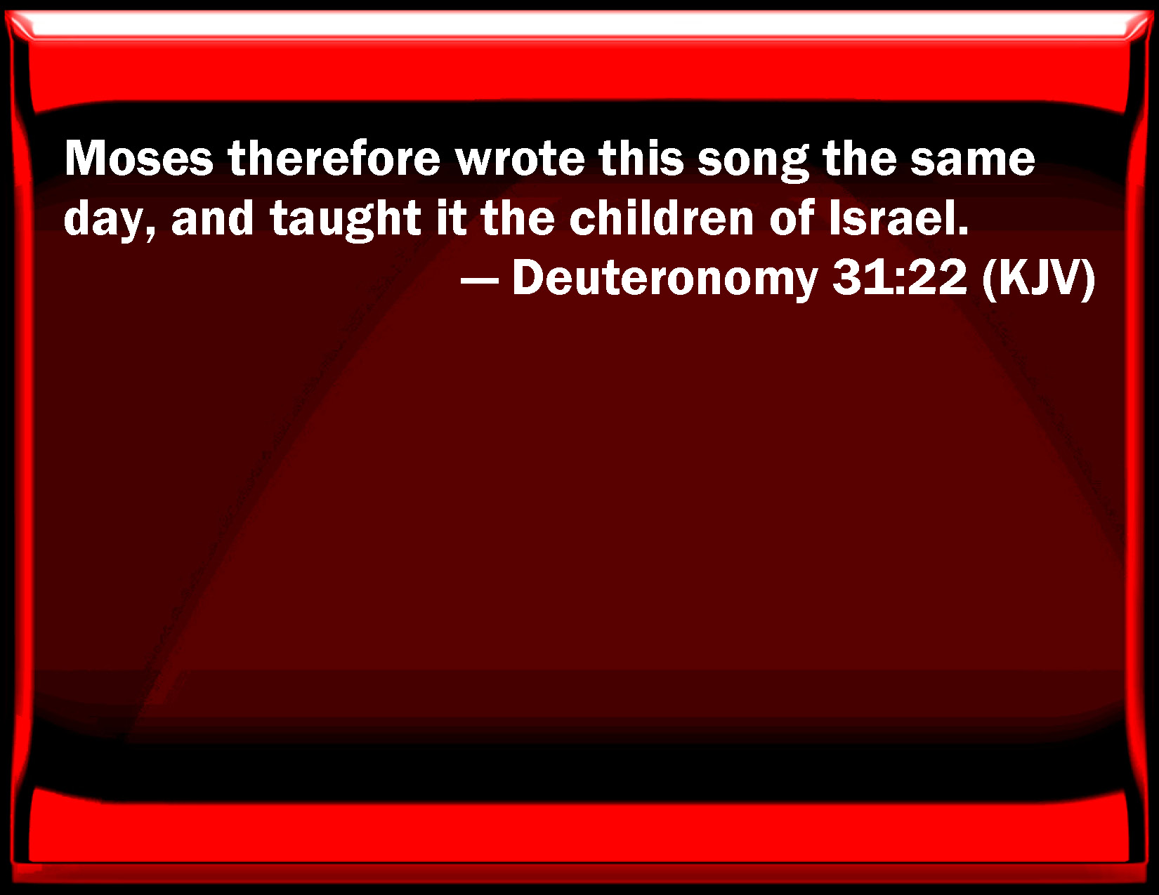 Deuteronomy 31:22 Moses therefore wrote this song the same day, and taught it the children of Israel.