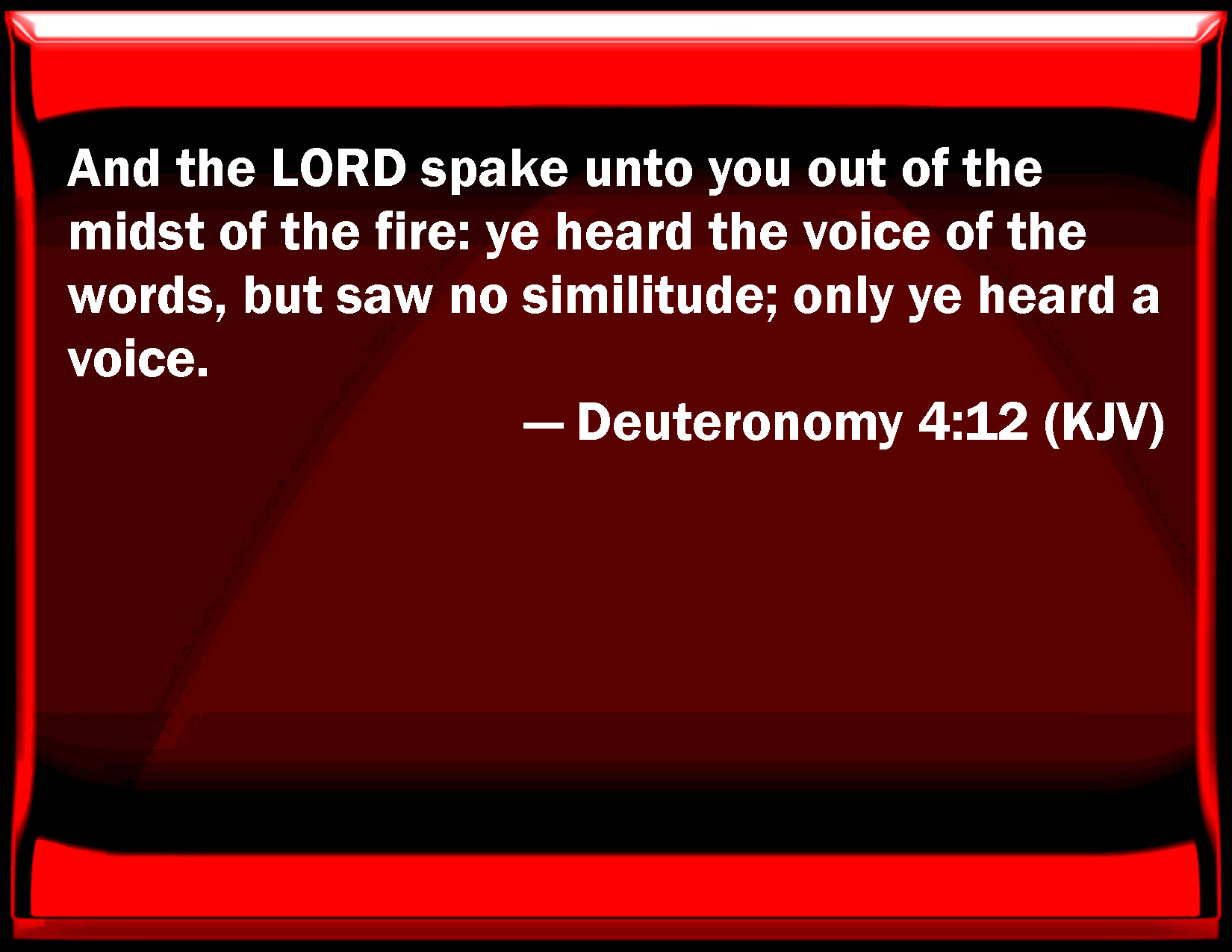 Deuteronomy 4:12 And the LORD spoke to you out of the middle of the fire: you heard the voice of the words, but saw no similitude; only you heard a voice.