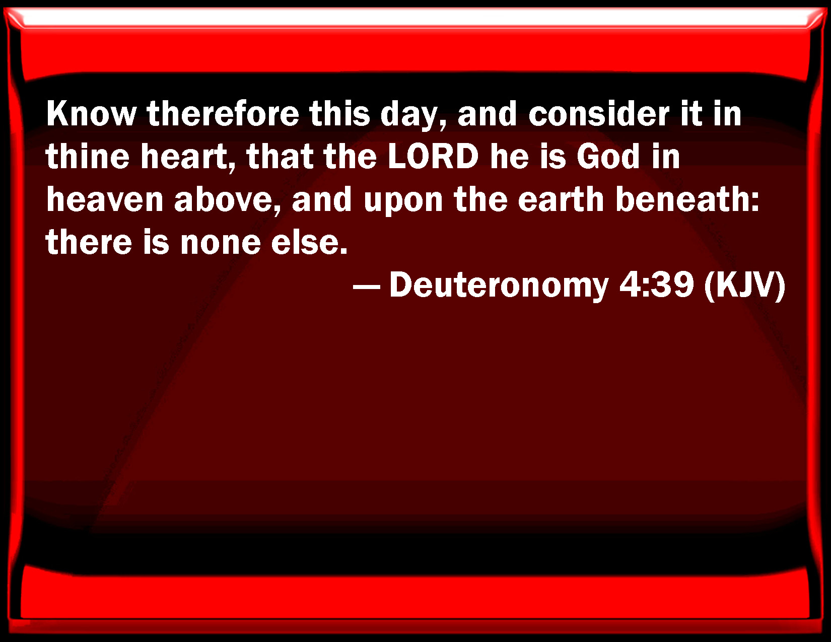 KJV:  Know therefore this day, and consider it in thine heart, that the LORD he is God in heaven above, and upon the earth beneath: there is none else.