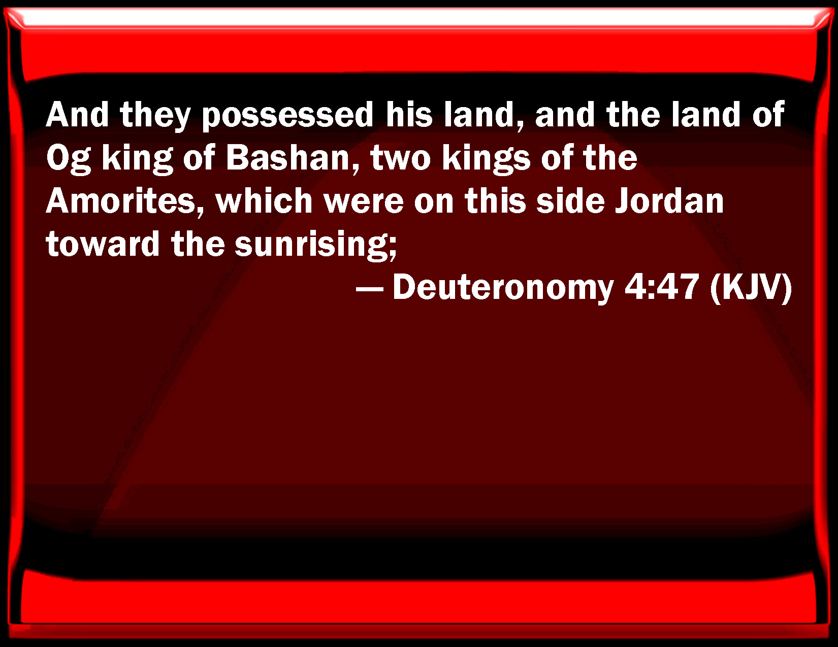 Deuteronomy 4:47 And they possessed his land, and the land of Og king of Bashan, two kings of the Amorites, which were on this side Jordan toward the sun rise;