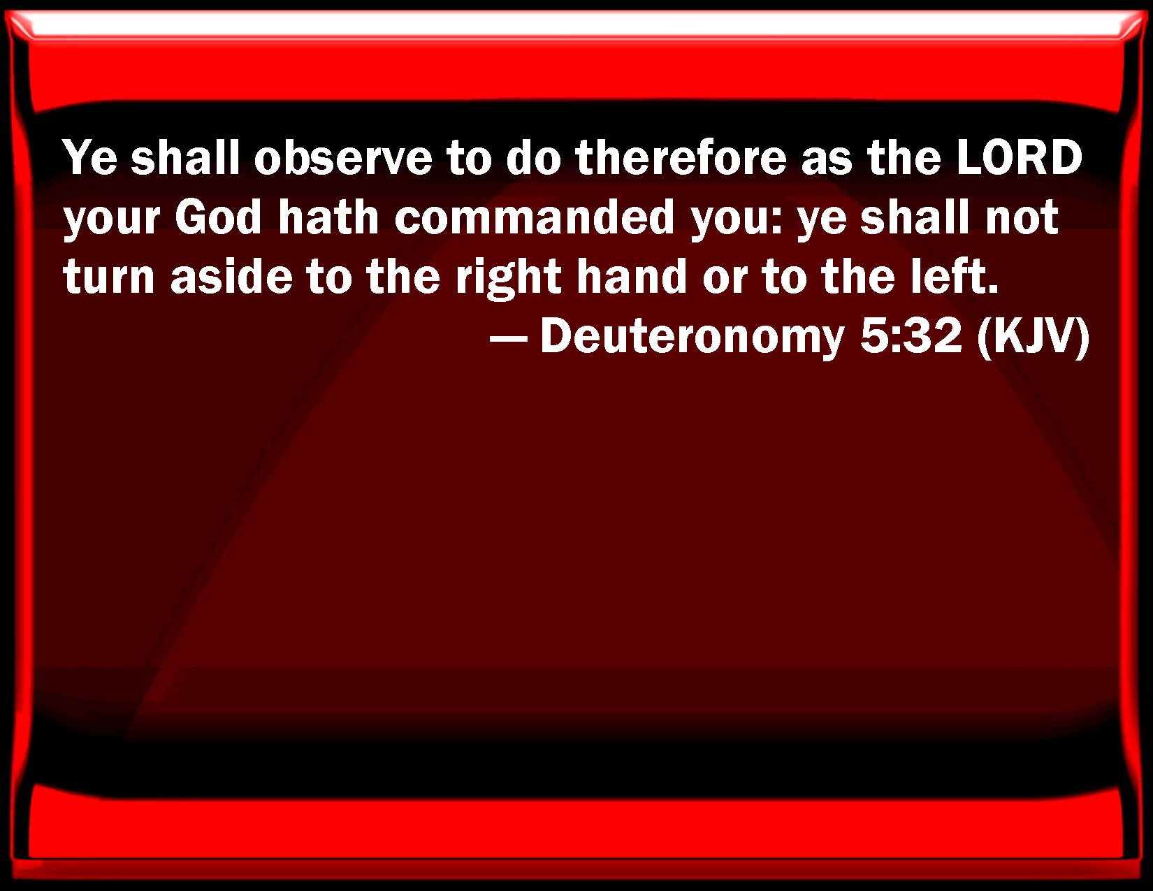 Deuteronomy 5:32 You shall observe to do therefore as the LORD your God has commanded you: you shall not turn aside to the right hand or to the left.
