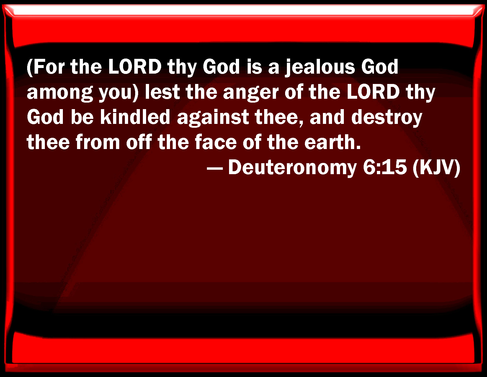 Deuteronomy 6:15 (For the LORD your God is a jealous God among you) lest the anger of the LORD your God be kindled against you, and destroy you from off the face of the earth.