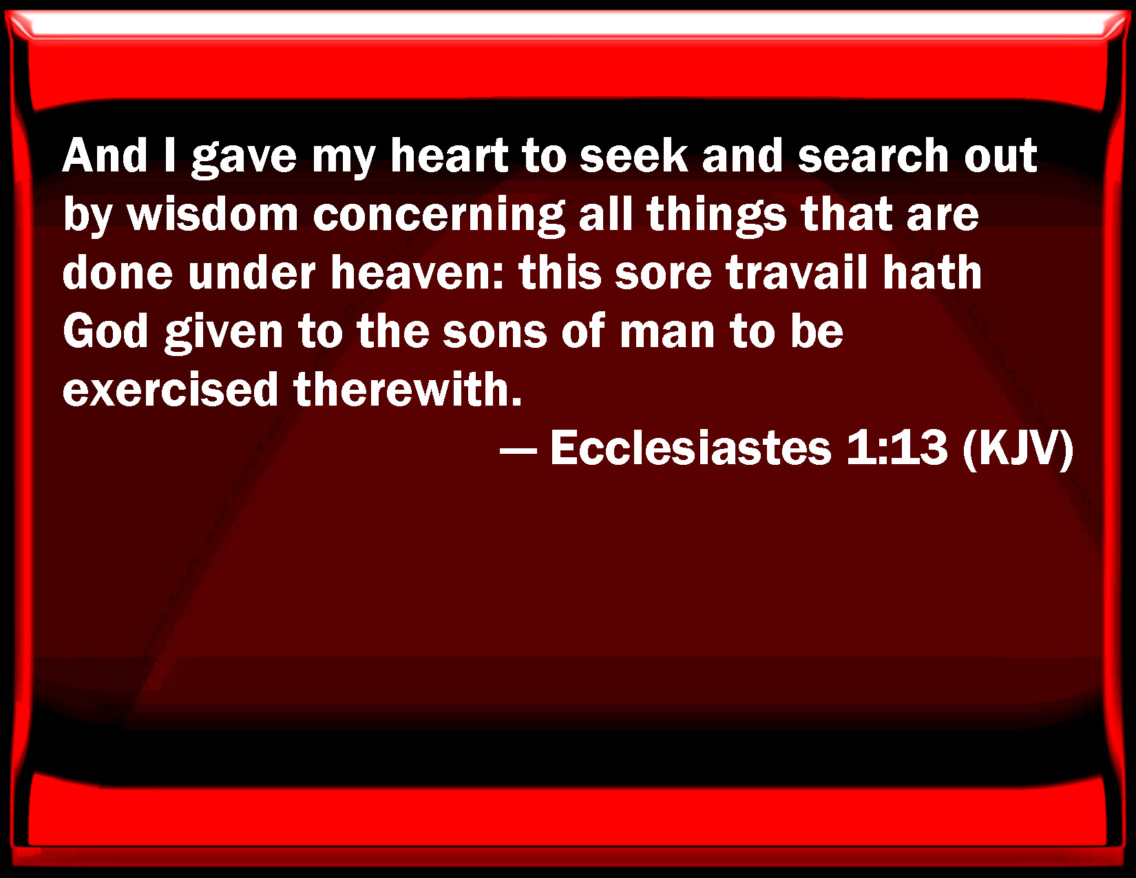 Ecclesiastes 1:13 And I gave my heart to seek and search out by wisdom concerning all things that are done under heaven: this sore travail has God given to the sons of man to be exercised therewith.