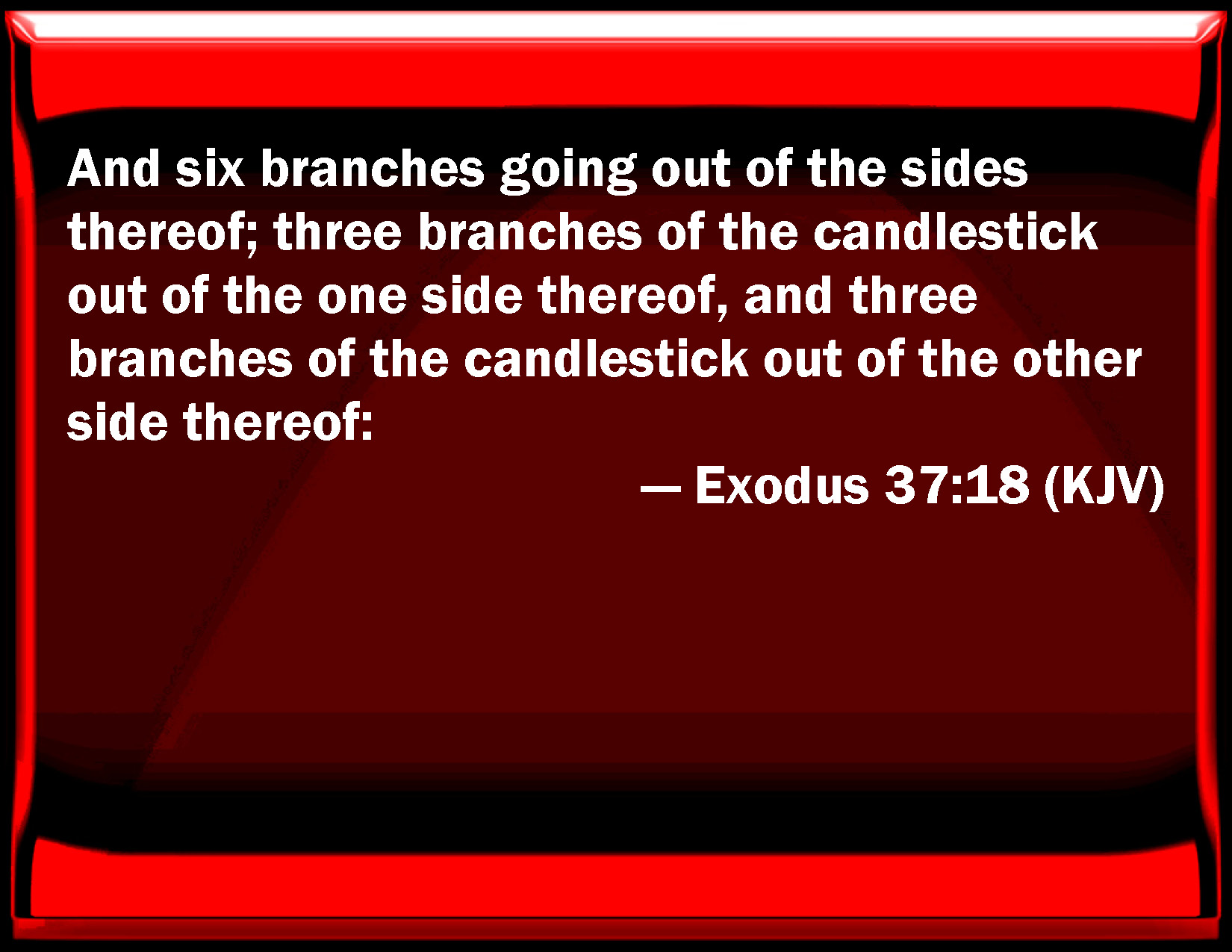 Exodus 37:18 And six branches going out of the sides thereof; three branches of the candlestick out of the one side thereof, and three branches of the candlestick out of the other side thereof: