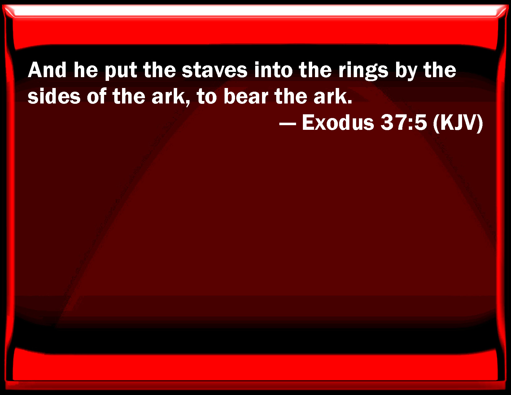 Exodus 37:5 And he put the staves into the rings by the sides of the ark, to bear the ark.