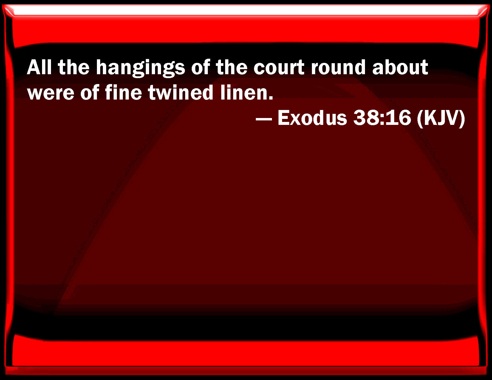 Exodus 38:16 All the hangings of the court round about were of fine twined linen.