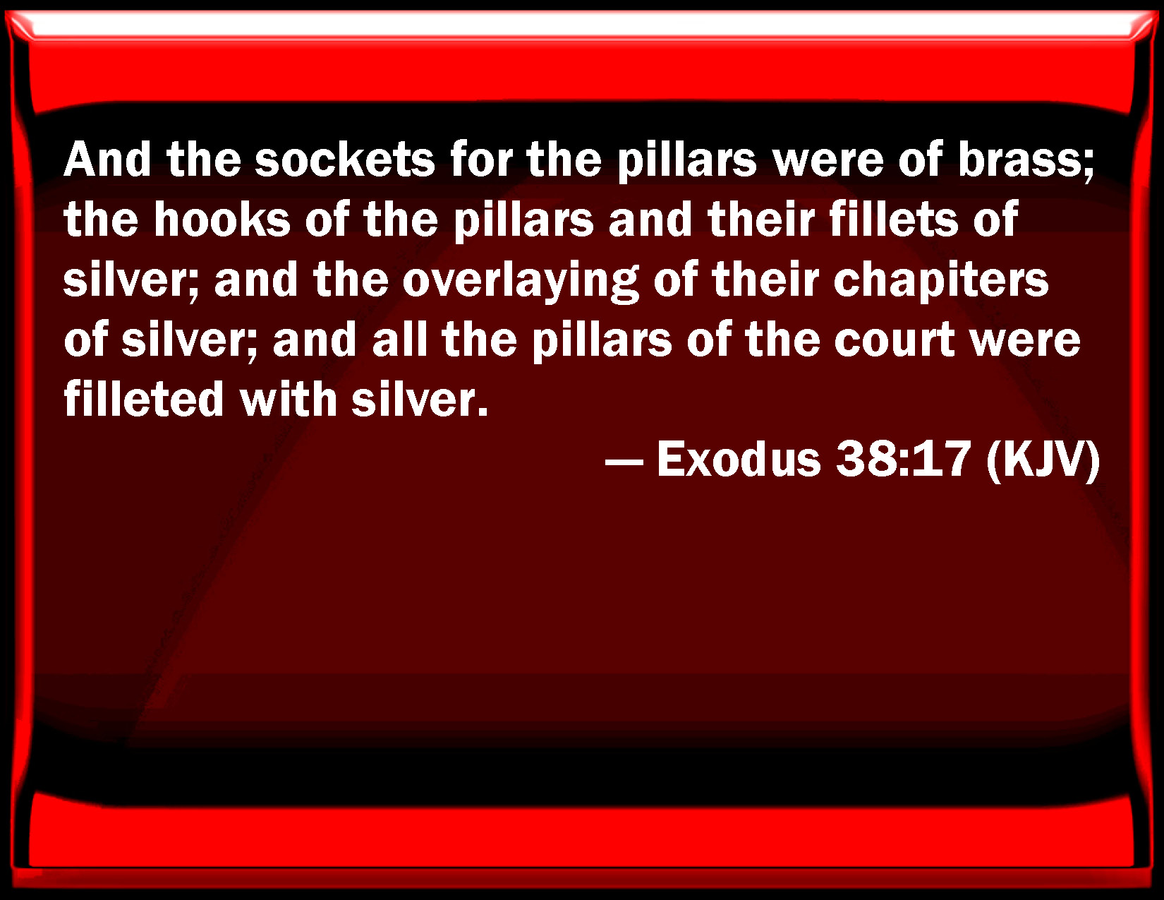 And the sockets for the pillars were of brass; the hooks of the pillars and their fillets of silver; and the overlaying of their chapiters of silver; and all the pillars of the court were filleted with silver.