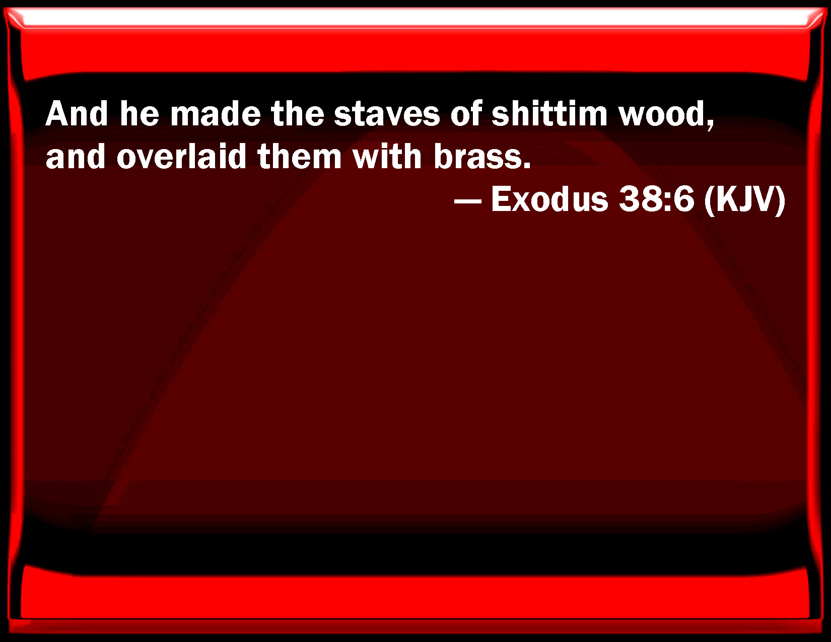 Exodus 38:6 And he made the staves of shittim wood, and overlaid them with brass.