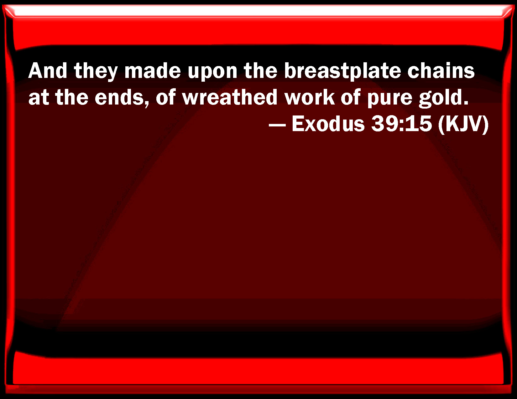 Exodus 39:15 And they made on the breastplate chains at the ends, of wreathen work of pure gold.