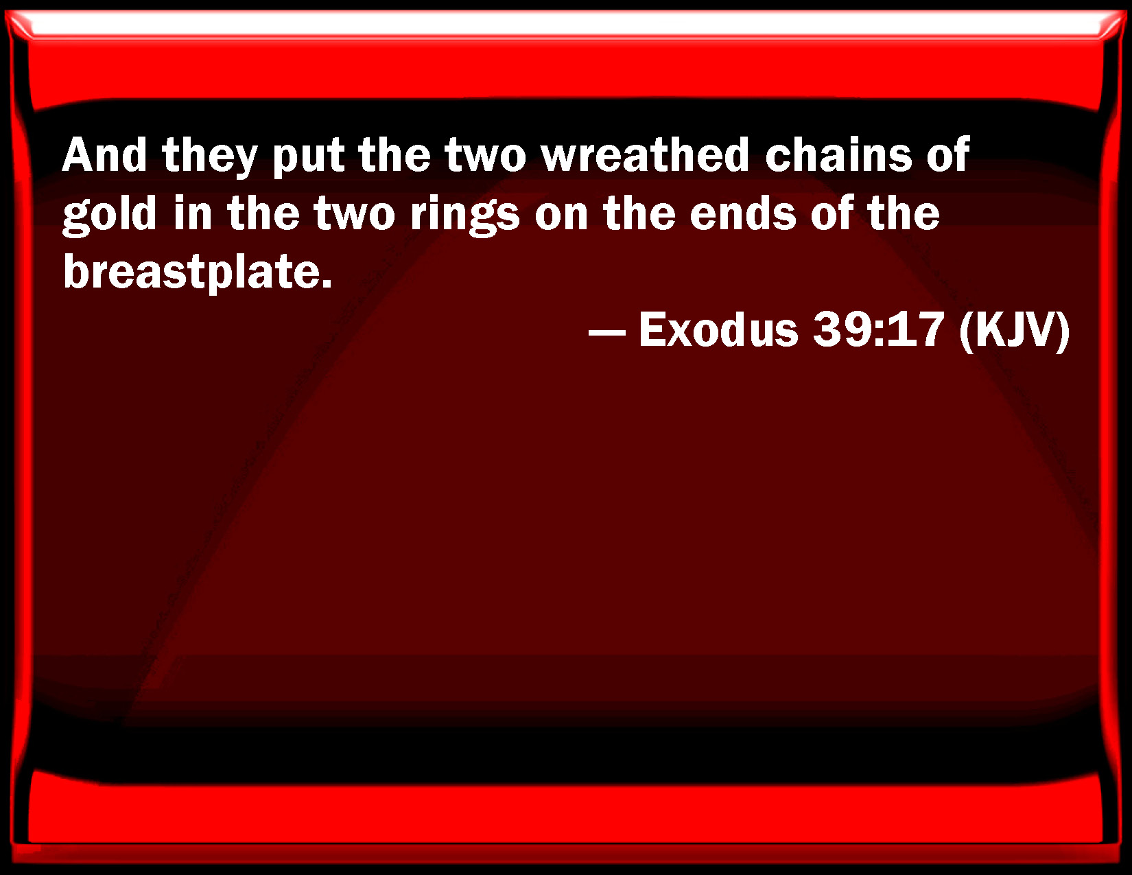 Exodus 39:17 And they put the two wreathen chains of gold in the two rings on the ends of the breastplate.