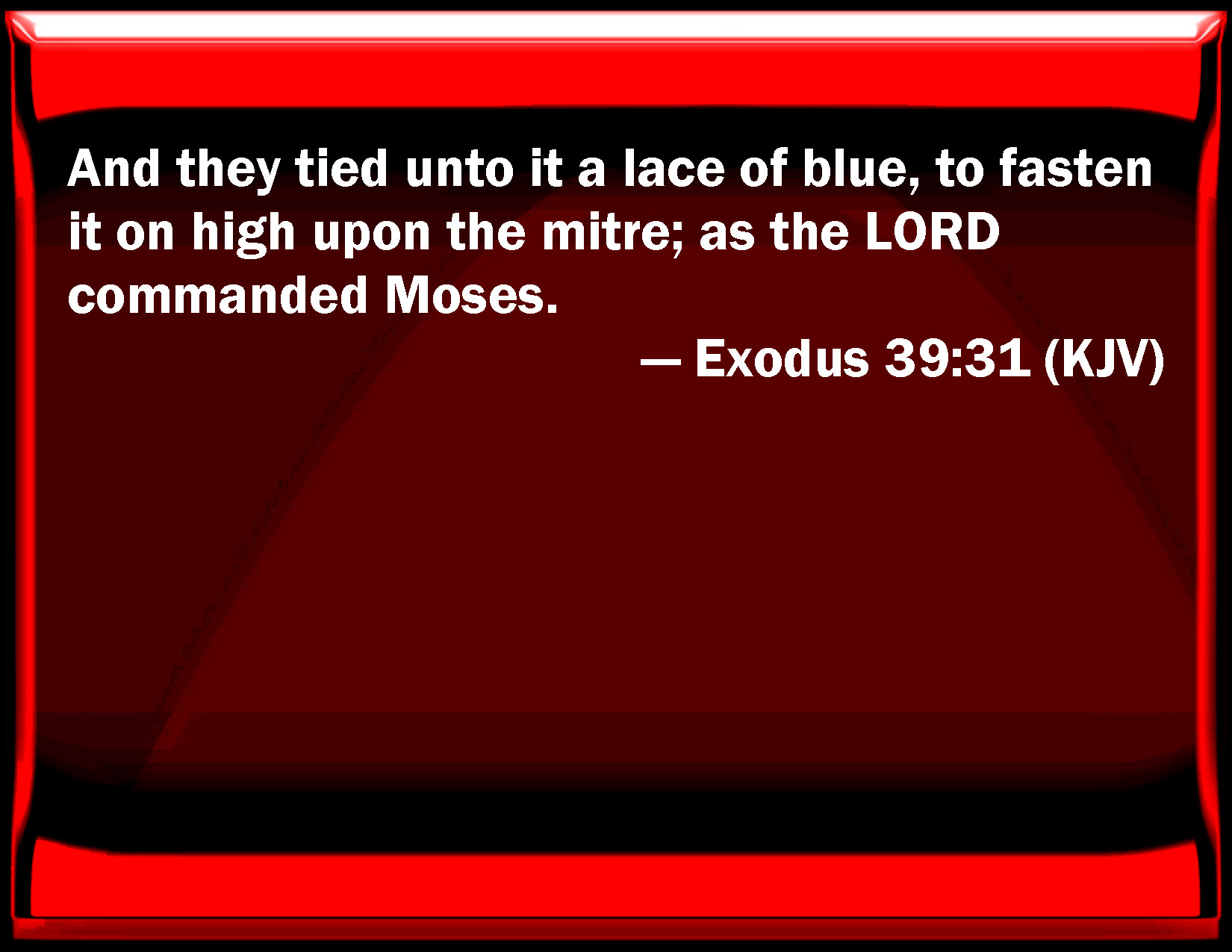 Exodus 39:31 And they tied to it a lace of blue, to fasten it on high on the turban; as the LORD commanded Moses.