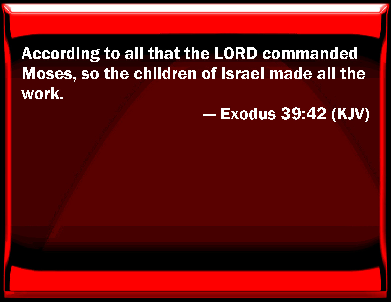 Exodus 39:42 According to all that the LORD commanded Moses, so the children of Israel made all the work.