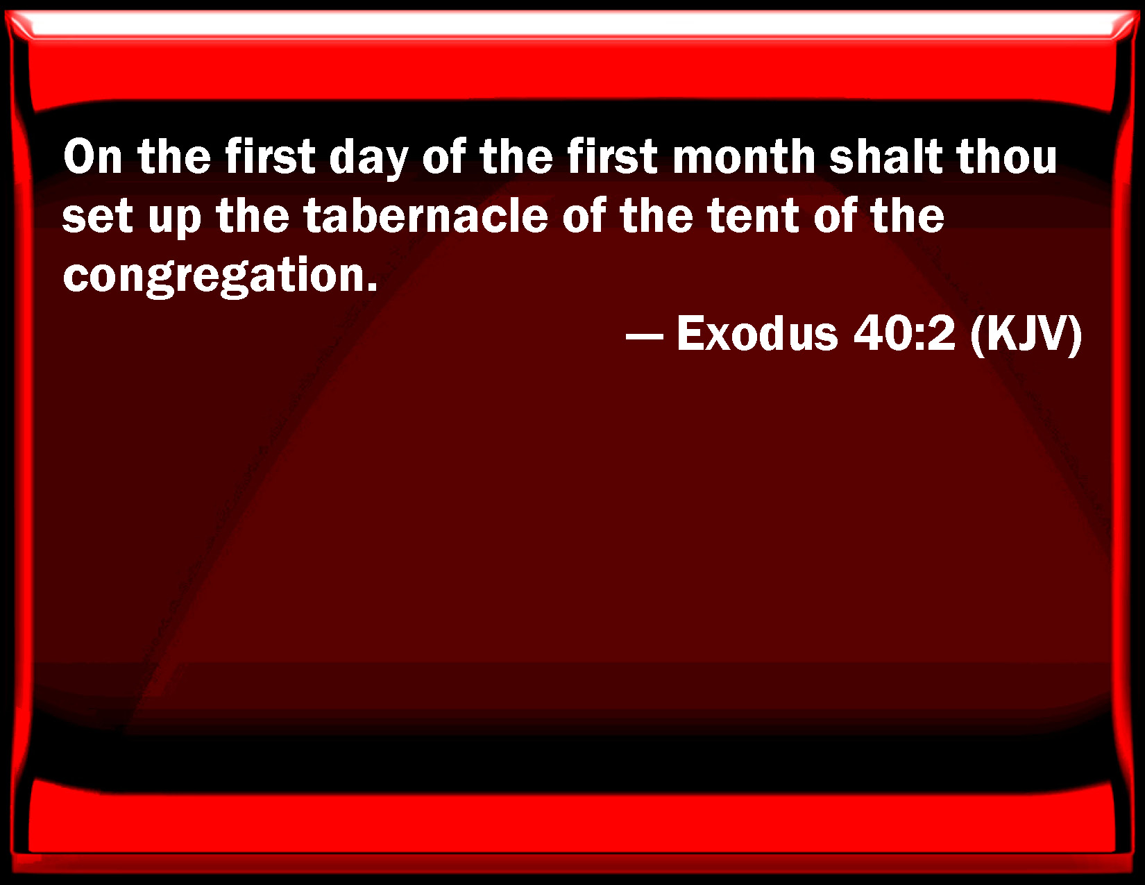 Exodus 40:2 On the first day of the first month shall you set up the tabernacle of the tent of the congregation.