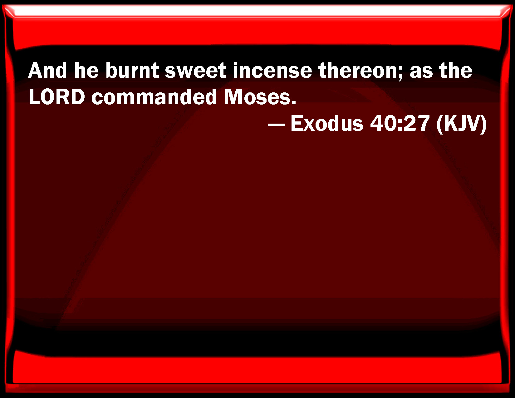 Exodus 40:27 And he burnt sweet incense thereon; as the LORD commanded Moses.