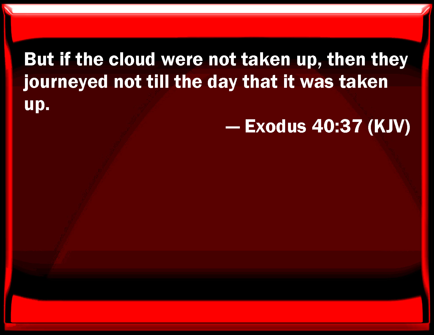 Exodus 40:37 But if the cloud were not taken up, then they journeyed not till the day that it was taken up.