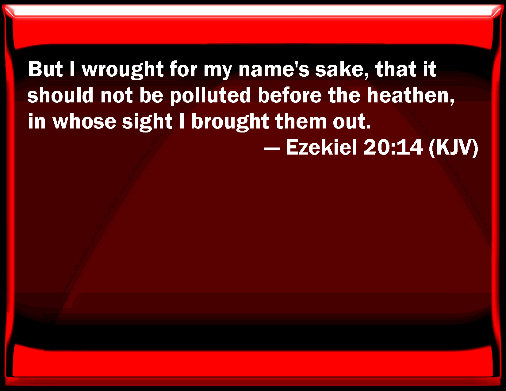 Bible Verse Slide Ezekiel 20:14 But I worked for my name's sake, that it should not be polluted before the heathen, in whose sight I brought them out. KJV: But I wrought for my name's sake, that it should not be polluted before the heathen, in whose sight I brought them out. DRB: But I spared them for the sake of my name, lest it should be profaned before the nations, from which I brought them out, in their sight. DBT: But I wrought for my name's sake, that it should not be profaned in the sight of the nations, in whose sight I had brought them out. ERV: But I wrought for my name's sake, that it should not be profaned in the sight of the nations, in whose sight I brought them out. WBT: But I wrought for my name's sake, that it should not be profaned before the heathen, in whose sight I brought them out. WEB: But I worked for my name's sake, that it should not be profaned in the sight of the nations, in whose sight I brought them out. YLT: And I do it for My name's sake, Not to pollute it before the eyes of the nations, Before whose eyes I brought them forth.Links Ezekiel 20:14 NIV • Ezekiel 20:14 NLT • Ezekiel 20:14 ESV • Ezekiel 20:14 NASB • Ezekiel 20:14 KJV • Ezekiel 20:14 Interlinear • Ezekiel 20:14 Commentaries • Ezekiel 20:14 Parallel Texts • Ezekiel 20:14 Bible Apps • Ezekiel 20:14 Parallel • Bible Hub |