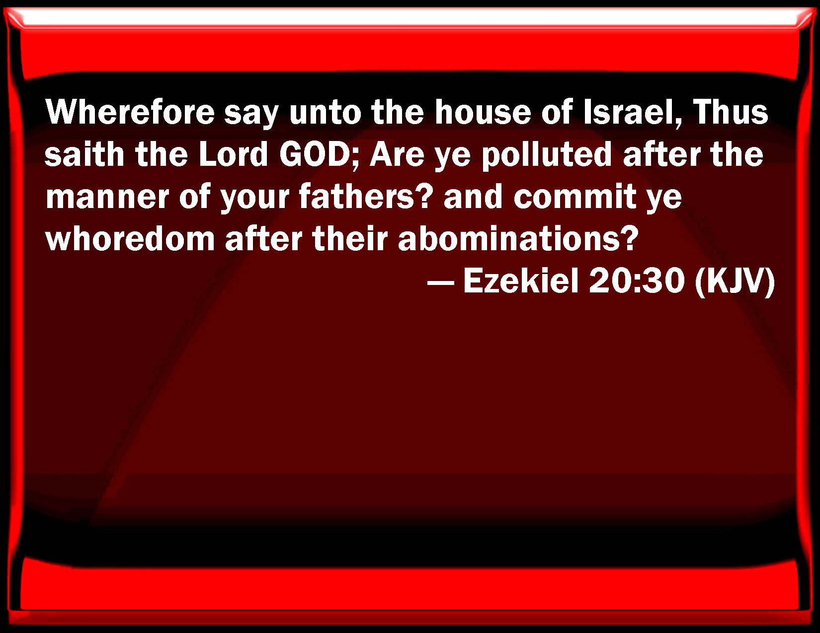 Ezekiel 20:30 Why say to the house of Israel, Thus said the Lord GOD; Are you polluted after the manner of your fathers? and commit you prostitution after their abominations?