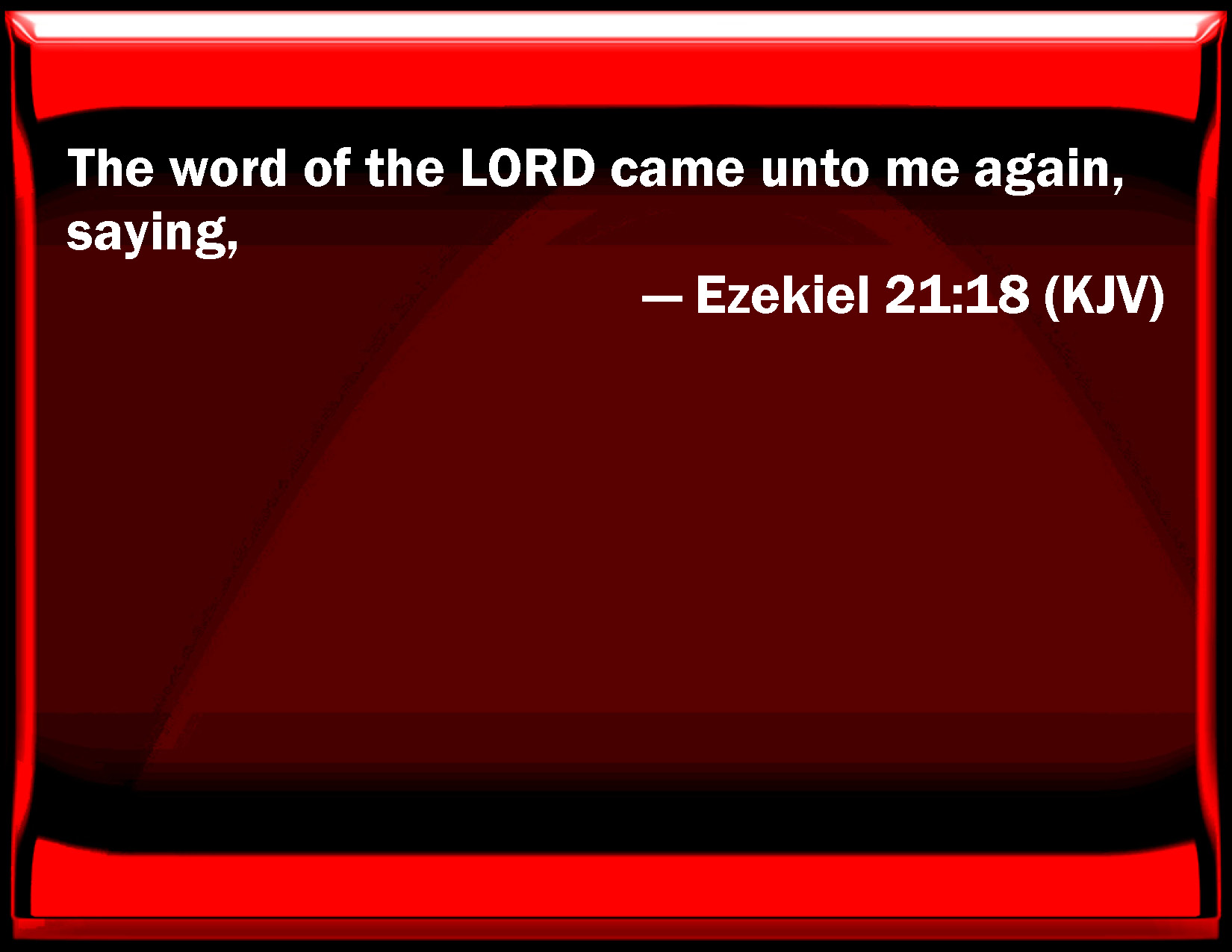 Bible Verse Slide Ezekiel 21:18 The word of the LORD came to me again, saying, KJV: The word of the LORD came unto me again, saying, DRB: And the word of the Lord came to me, saying: DBT: And the word of Jehovah came unto me, saying, ERV: The word of the LORD came unto me again, saying, WBT: The word of the LORD came to me again, saying, WEB: The word of Yahweh came to me again, saying, YLT: And there is a word of Jehovah unto me, saying,Links Ezekiel 21:18 NIV • Ezekiel 21:18 NLT • Ezekiel 21:18 ESV • Ezekiel 21:18 NASB • Ezekiel 21:18 KJV • Ezekiel 21:18 Interlinear • Ezekiel 21:18 Commentaries • Ezekiel 21:18 Parallel Texts • Ezekiel 21:18 Bible Apps • Ezekiel 21:18 Parallel • Bible Hub |